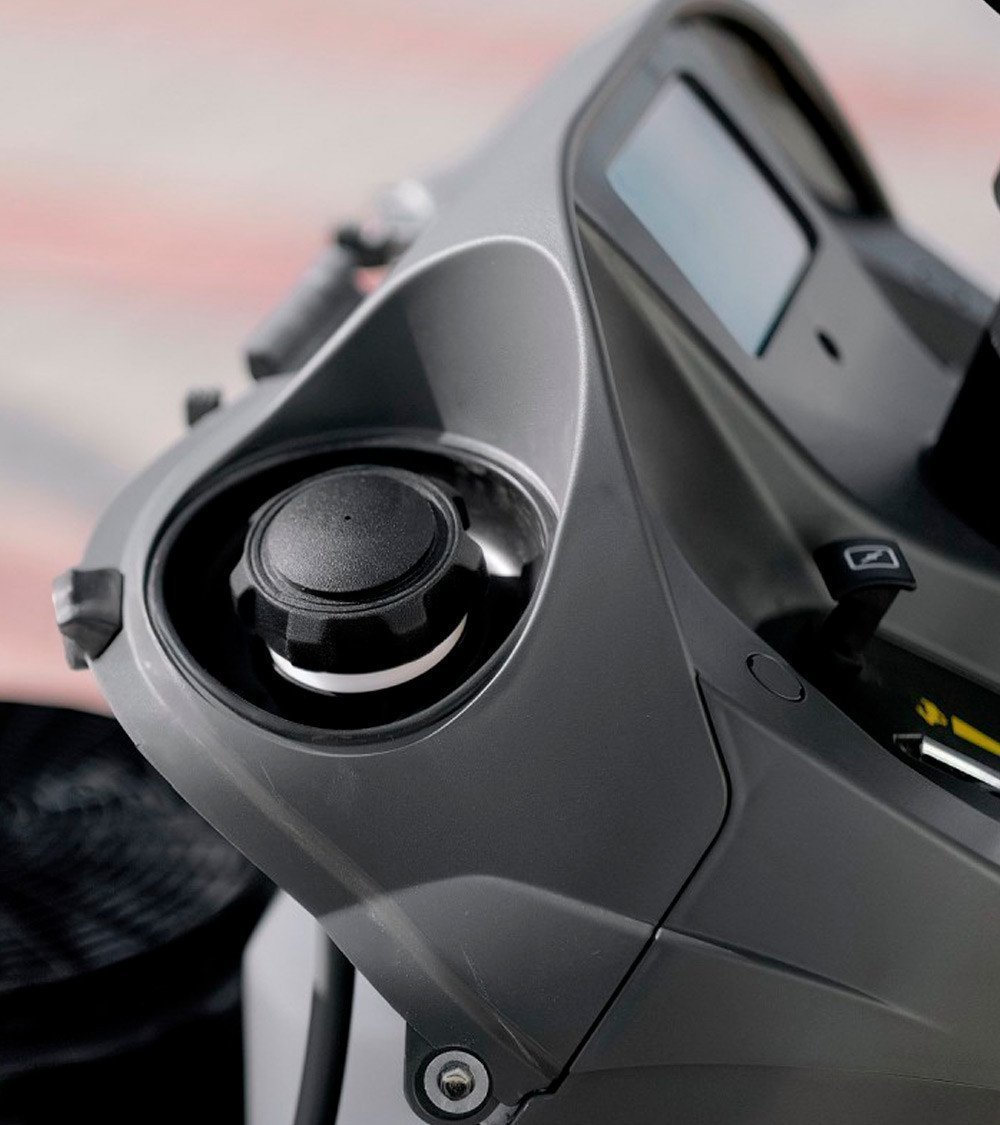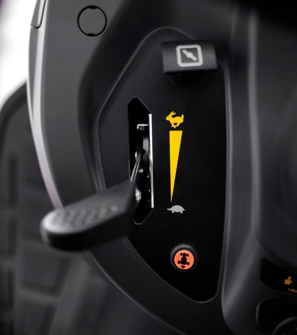 Komfortables, sicheres Design mit Soft-Grip-Lenkrad, Sitz mit Armlehnen, leistungsstarken LED-Scheinwerfern und Sicherheitsschalter im Sitz