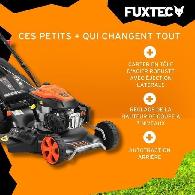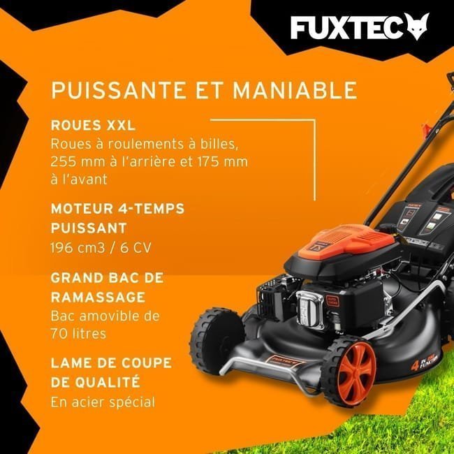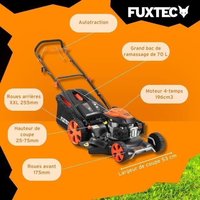 Benzinrasenmäher – FUXTEC FX-RM5396, selbstfahrend, 196 cm³, 53 cm Schnittbreite, Mulchfunktion