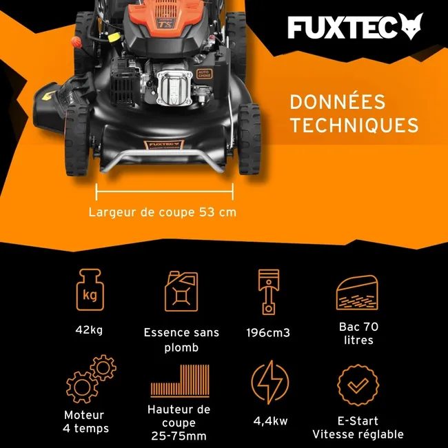 Benzinrasenmäher – FUXTEC RM5396EsPRO, selbstfahrend, Elektrostart, 53 cm Schnittbreite, 196 cm³