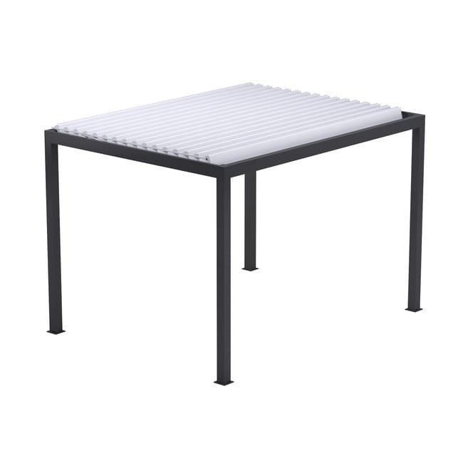 Bioklimatische freistehende Pergola Génova 4 × 3 m Grau mit weißen Lamellen