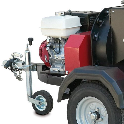 Der Holzhäcksler BIO 510 mit Honda GX390 Motor und hydraulischem Einzugssystem ist mit einem zugelassenen Anhänger serienmäßig ausgestattet – ideal für einfachen Transport und flexible Einsätze.