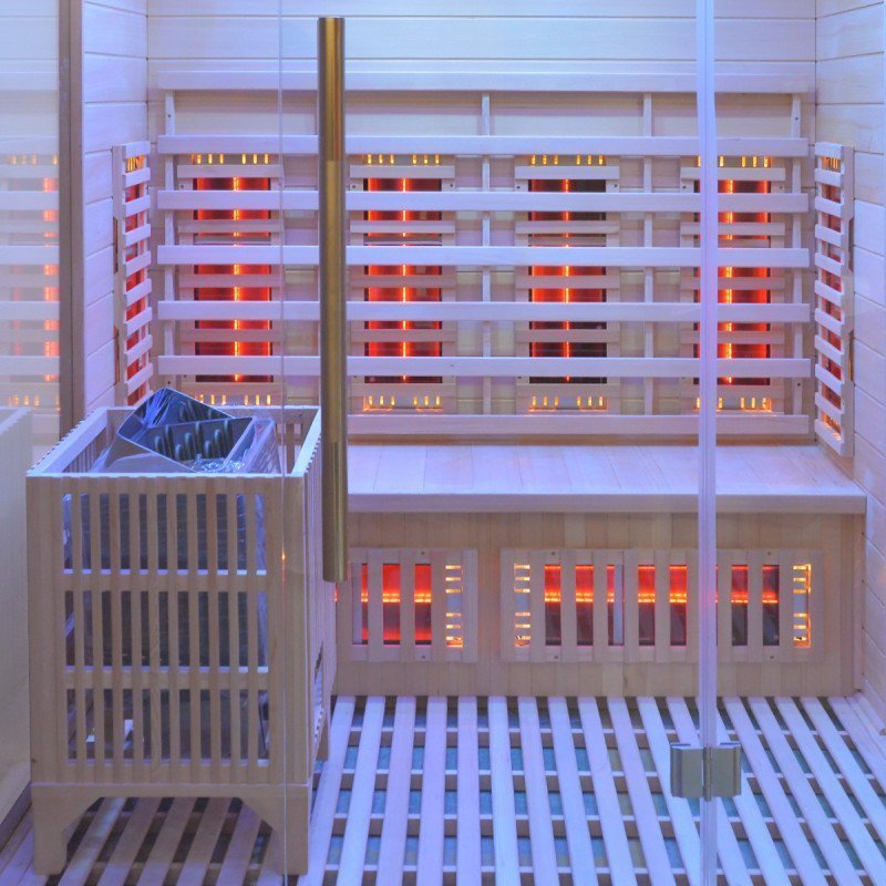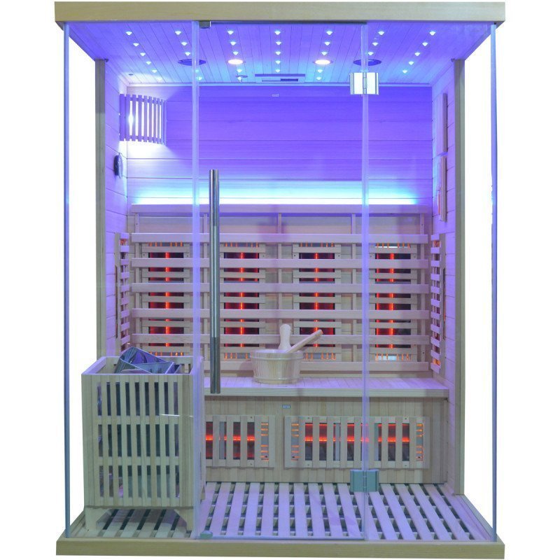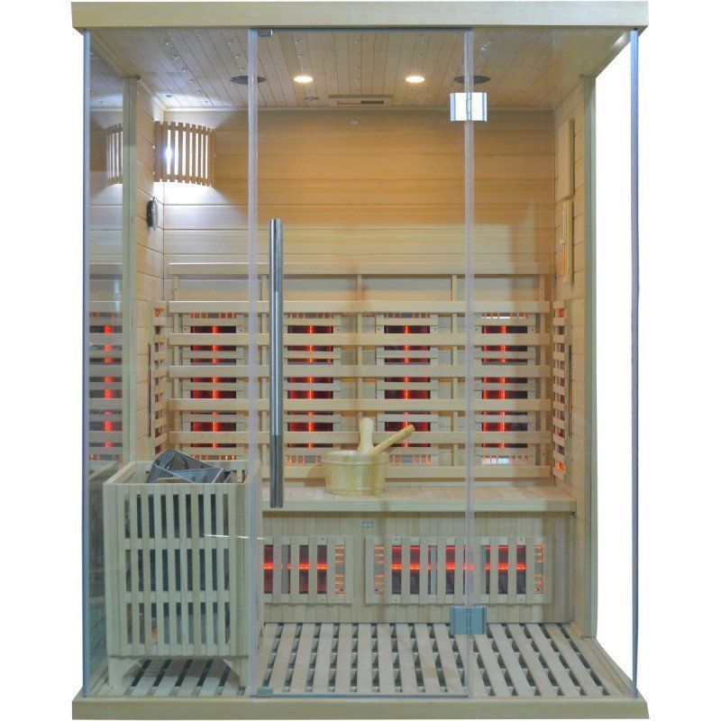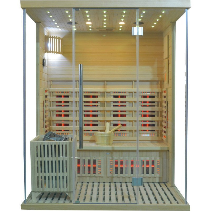 Hybridsauna LUXE für 3 Personen mit Infrarot 2800 W + SAWO-Ofen 6000 W – SNÖ