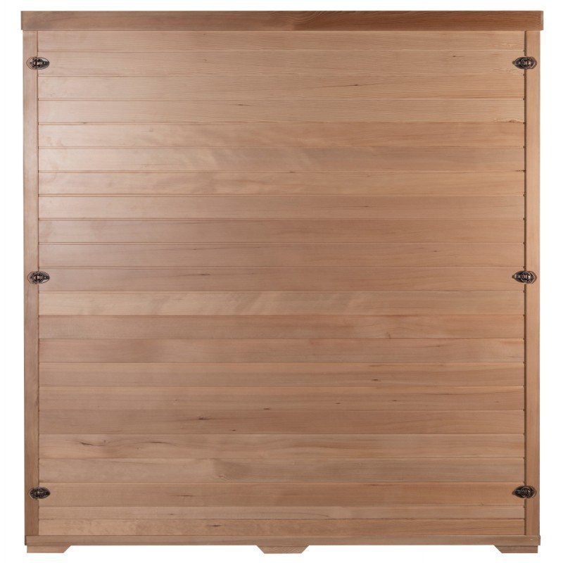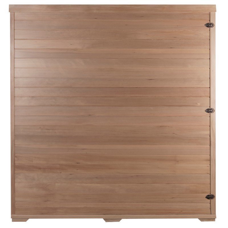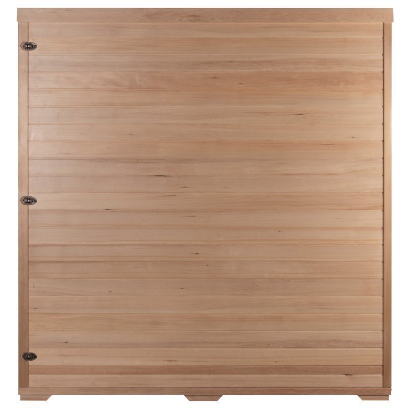 Das Design der Snö-Saunakabine ist äußerst hochwertig und sorgfältig verarbeitet. Die Seitenwände bestehen aus kanadischem Hemlockholz mit einer Stärke von 43 mm (6,5 mm + 30 mm + 6,5 mm). Die Sauna vereint zwei Arten von Infrarotheizsystemen: Keramikstrahler und Carbonstrahler. Die Keramikstrahler sorgen für eine schnellere Erwärmung der Kabine, während die Carbonstrahler eine gleichmäßigere Wärmeverteilung im gesamten Innenraum fördern. Beide Heizsysteme erwärmen die Haut direkt durch Strahlung. Die Infrarotwellen sind völlig ungefährlich – es handelt sich um dieselben Wellen, die in Brutkästen in Entbindungsstationen verwendet werden.