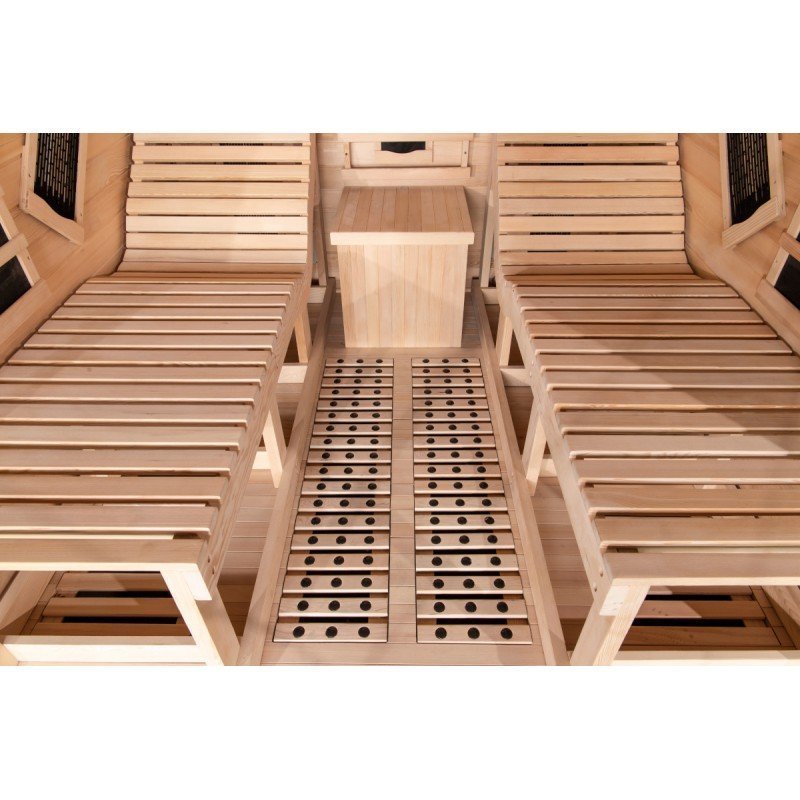 Im Gegensatz zu traditionellen Saunen benötigen Infrarotsaunen keine intensive Hitze im Innenraum. Die Temperatur steigt allmählich an und übersteigt 60 °C nicht. Die direkte Wärmestrahlung auf der Haut erzeugt das Wärmeempfinden und trägt zu sichtbaren Vorteilen bei: reinere und glattere Haut, verbesserte Durchblutung, entspannter Geist und Körper.