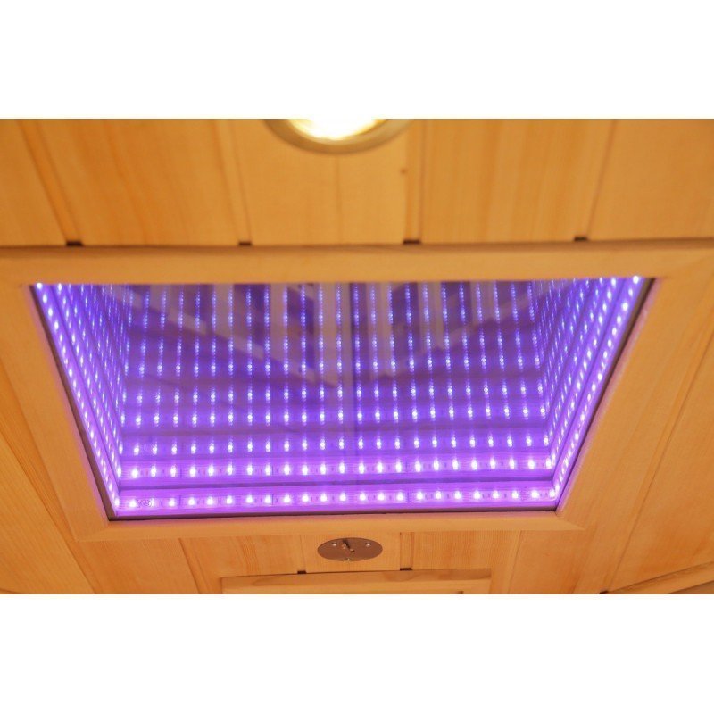Eine LED-Leselampe sorgt im Innenraum für gezieltes Licht, zusätzlich kann die 7-farbige Chromotherapie über den 20-LED-Deckenstrahler aktiviert werden. Dank Bluetooth lässt sich Musik direkt über das Smartphone steuern.