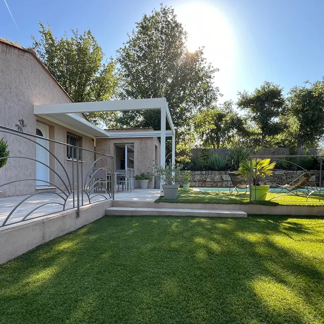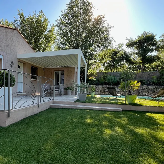 Die hochwertige retractable Pergola SIROCO von Intersun mit Aluminiumlamellen im Akkordeonstil ermöglicht es Ihnen, die Sonneneinstrahlung auf Ihrer Terrasse jederzeit zu regulieren. Im Gegensatz zu festen Systemen bietet sie die Flexibilität, den Außenbereich nach Wunsch freizulegen und gleichzeitig optimalen Sonnenschutz zu gewährleisten. Die Struktur aus extrudiertem Aluminium ist witterungs- und UV-beständig und garantiert Komfort sowie Langlebigkeit. Dank ihres eleganten, minimalistischen Designs fügt sie sich harmonisch in jede Architektur ein.