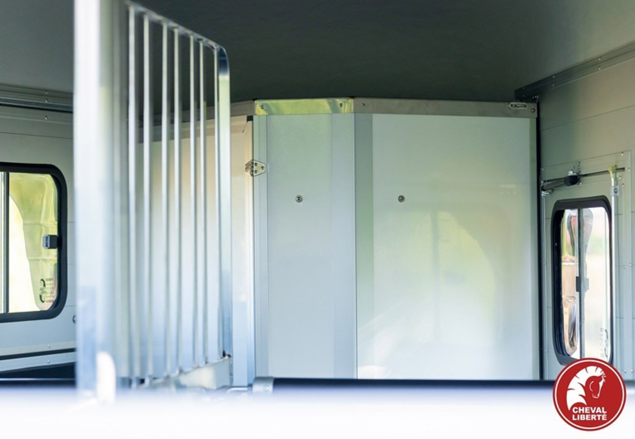 Das Innentrennsystem aus Aluminium bietet nochmals mehr Platz als das Standardmodell Touring XL. Zusätzlich ist eine verstärkte Kopftrennung integriert, teilverdeckt durch PVC-Bestandteile – für ruhige und sichere Pferdebeförderung.