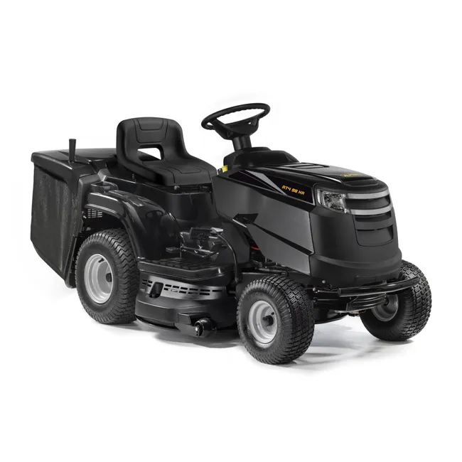 Rasentraktor mit 98 cm Schnittbreite, STIGA-Motor mit 452 cm³ und hydrostatischem Antrieb.