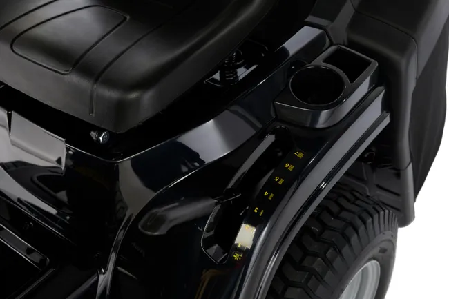 Das ergonomische STIGA-Lenkrad ist mit dem verstellbaren STIGA Classic Hochlehnsitz kombiniert und bietet hohen Fahrkomfort. Mulchkit und Anhängerkupplung sind im Lieferumfang enthalten, das Batterieladegerät wird separat verkauft.