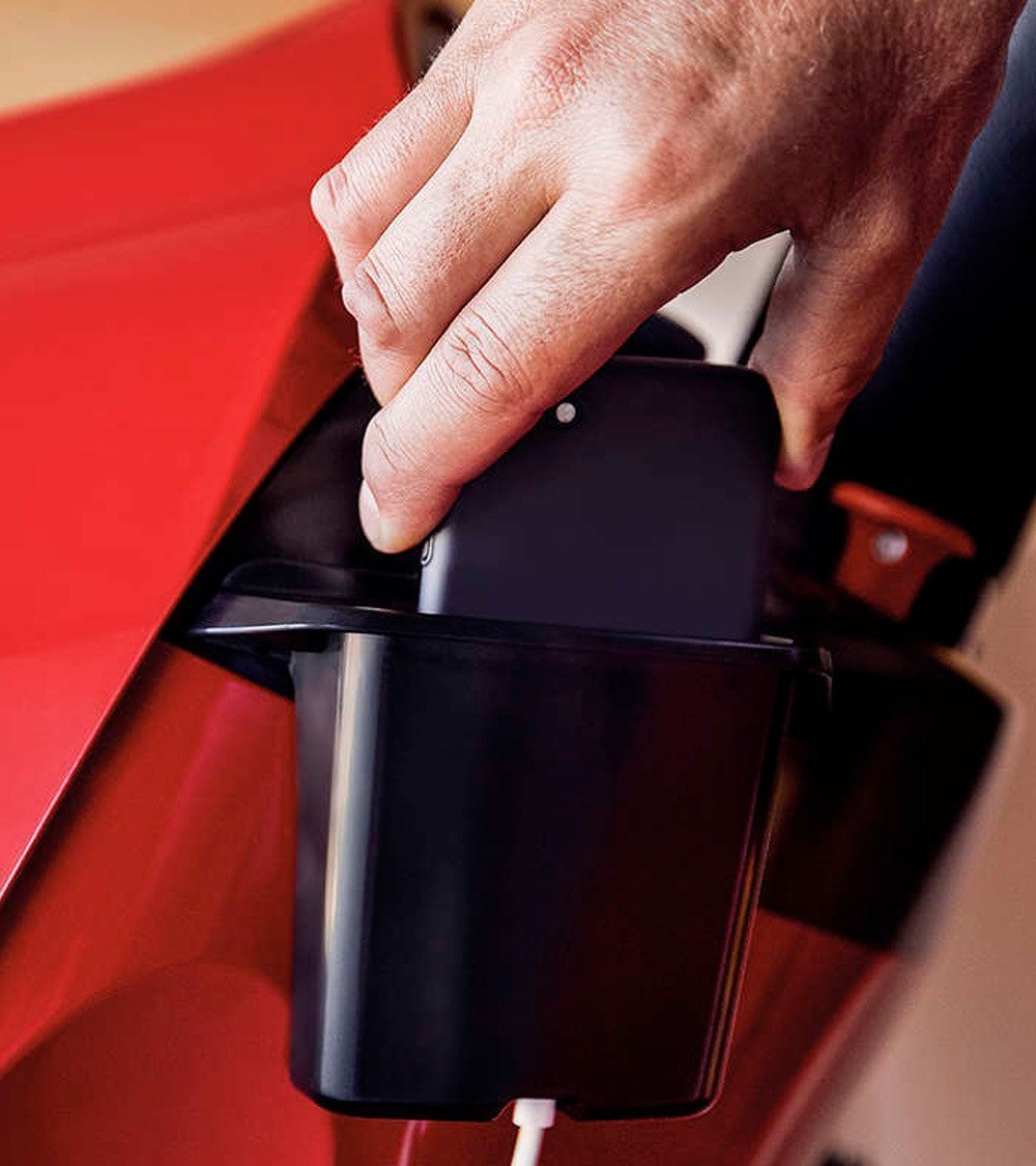 Der Sitz mit Armlehnen, die elektromagnetische Messerkupplung und ein intuitives Bedienpanel sorgen dafür, dass alle Funktionen mühelos steuerbar sind. Die sieben Schnitthöhen (2,9 bis 9 cm) lassen sich leicht einstellen, und die LED-Scheinwerfer schalten sich bei schwächerem Licht automatisch ein – ideal für frühe Morgenstunden oder die Abenddämmerung. Auch durchdachte Details überzeugen, wie die manuelle Entleerung des Auffangbehälters oder der Füllstandsanzeiger, der signalisiert, wann entleert werden muss.