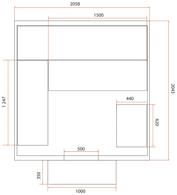 Außensauna 6 Plätze – Breite 185 × Tiefe 220 × Höhe 190 cm – ISOKYRO