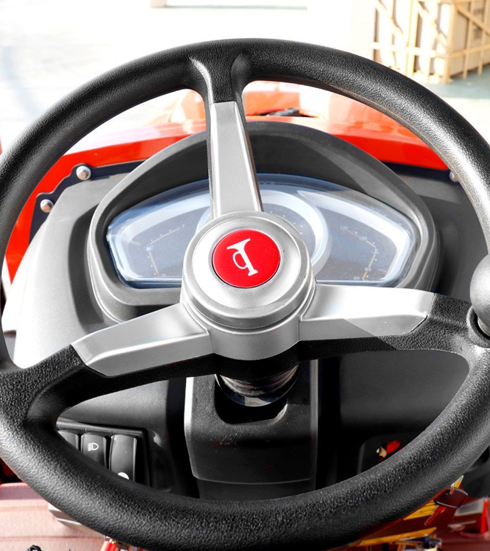 Der Traktor ist mit einer vollhydraulischen Servolenkung ausgestattet, die eine präzisere und komfortable Steuerung ermöglicht und die Belastung bei langen Arbeitstagen deutlich reduziert. Zusätzlich sorgt das Getriebe mit 8 Vorwärts- und 8 Rückwärtsgängen für Vielseitigkeit und erlaubt die Anpassung an unterschiedliche Boden- und Einsatzbedingungen.